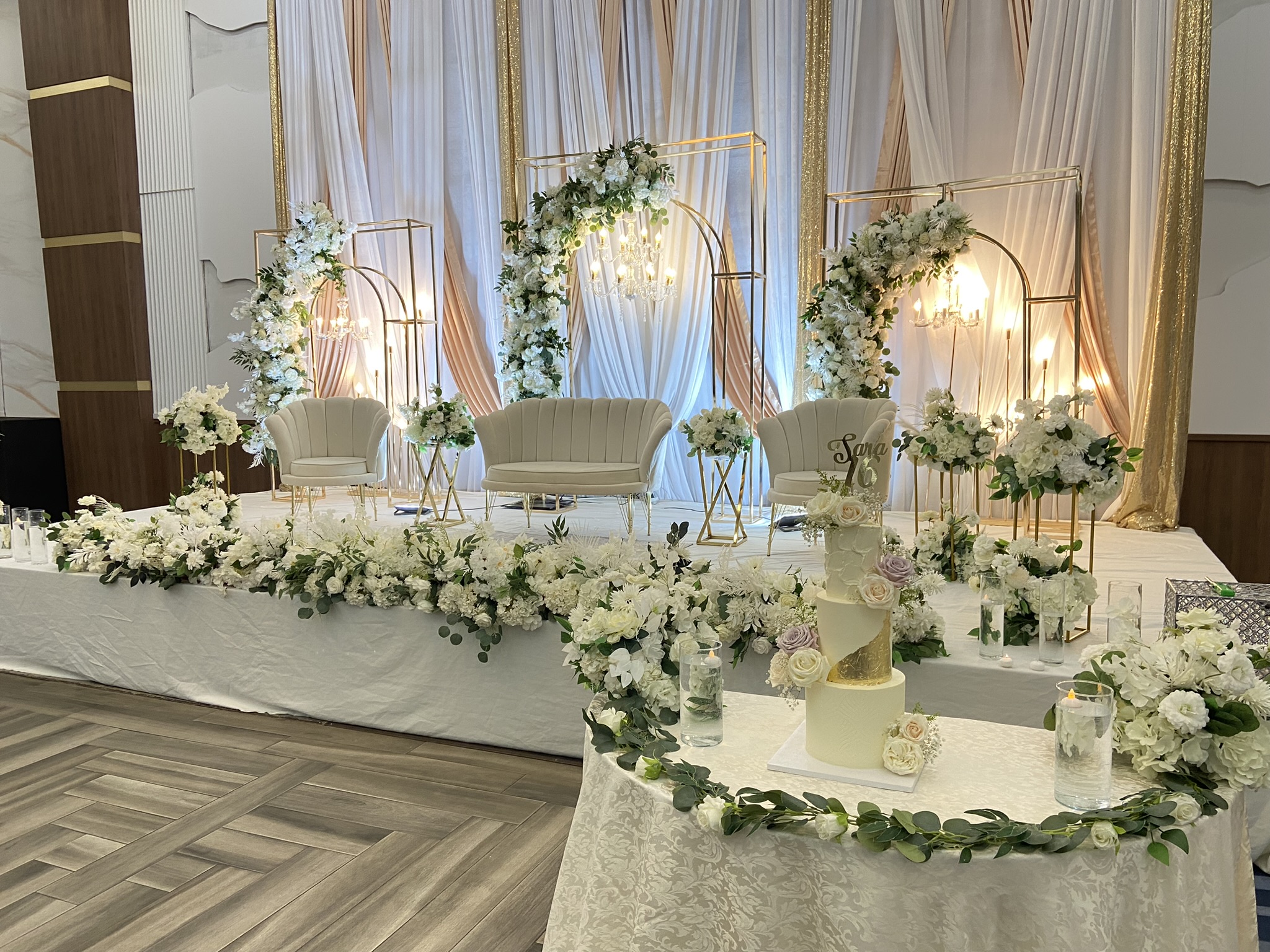 • Elegant stage backdrop & head table décor