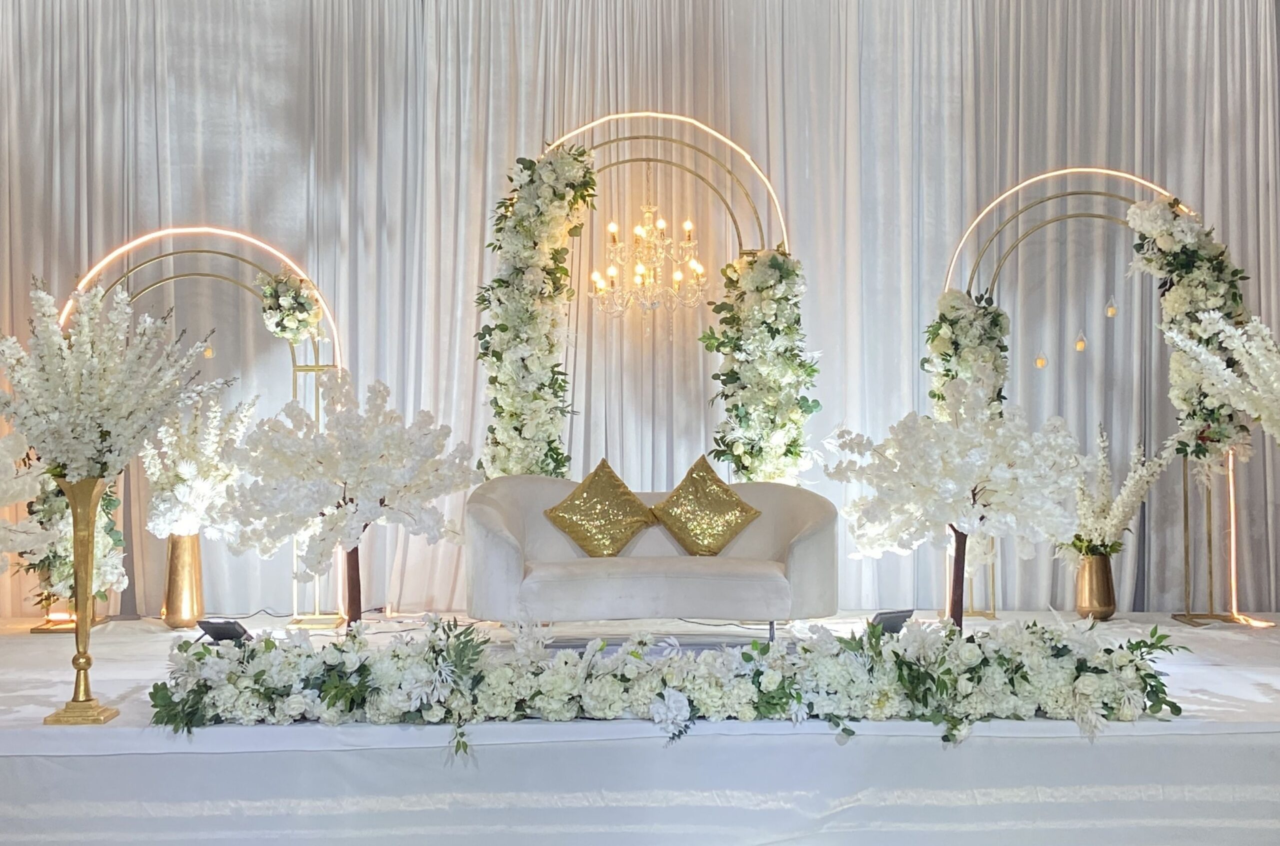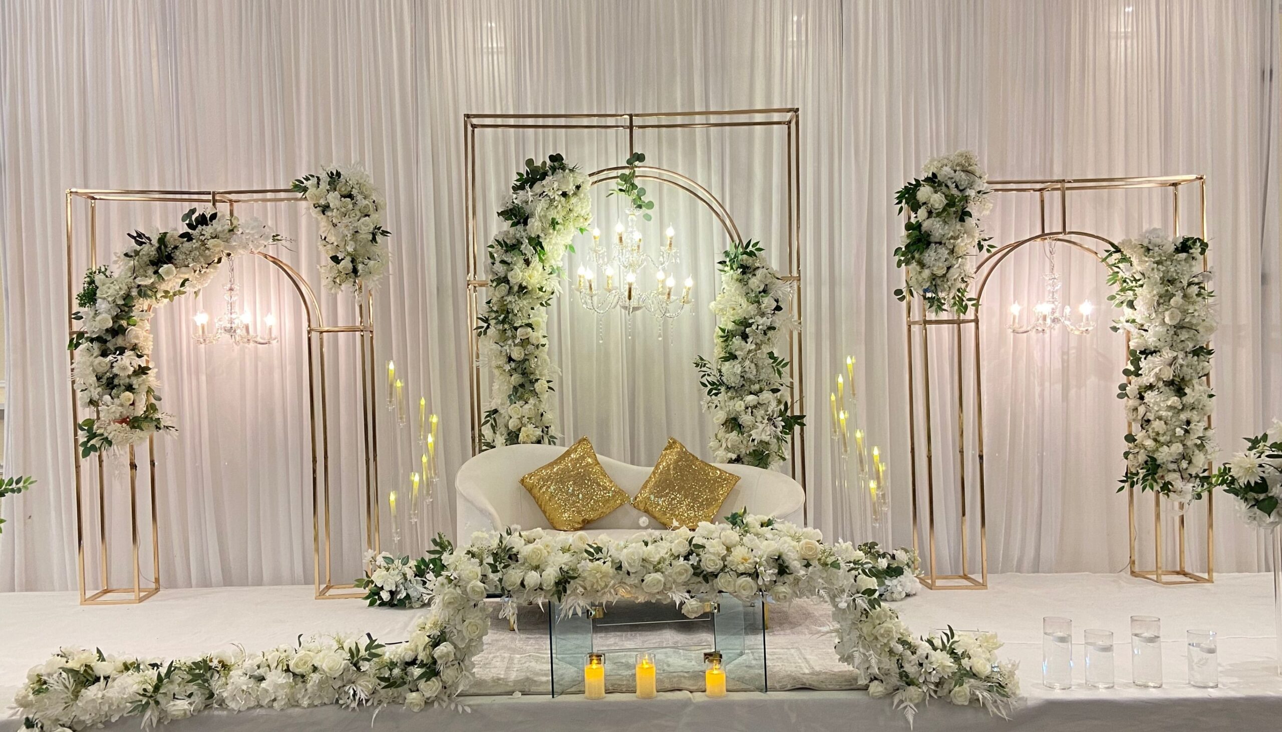 We offer complete wedding reception decoration in Brampton and GTA, including banquet halls, outdoor venues, and backyard receptions. Our expert team handles everything from concept design to final setup, ensuring a smooth and stress-free experience so you can enjoy every moment of your big day.